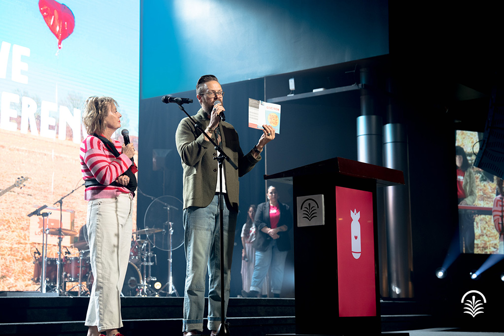 Calvary Church worshiped with special guest Aaron Shust during Love Bomb weekend before hearing from Pastor Nate Heitzig and Lenya Heitzig, founder of Reload Love, about this year's highlighted projects to bring the love of Jesus to the children of South Sudan.